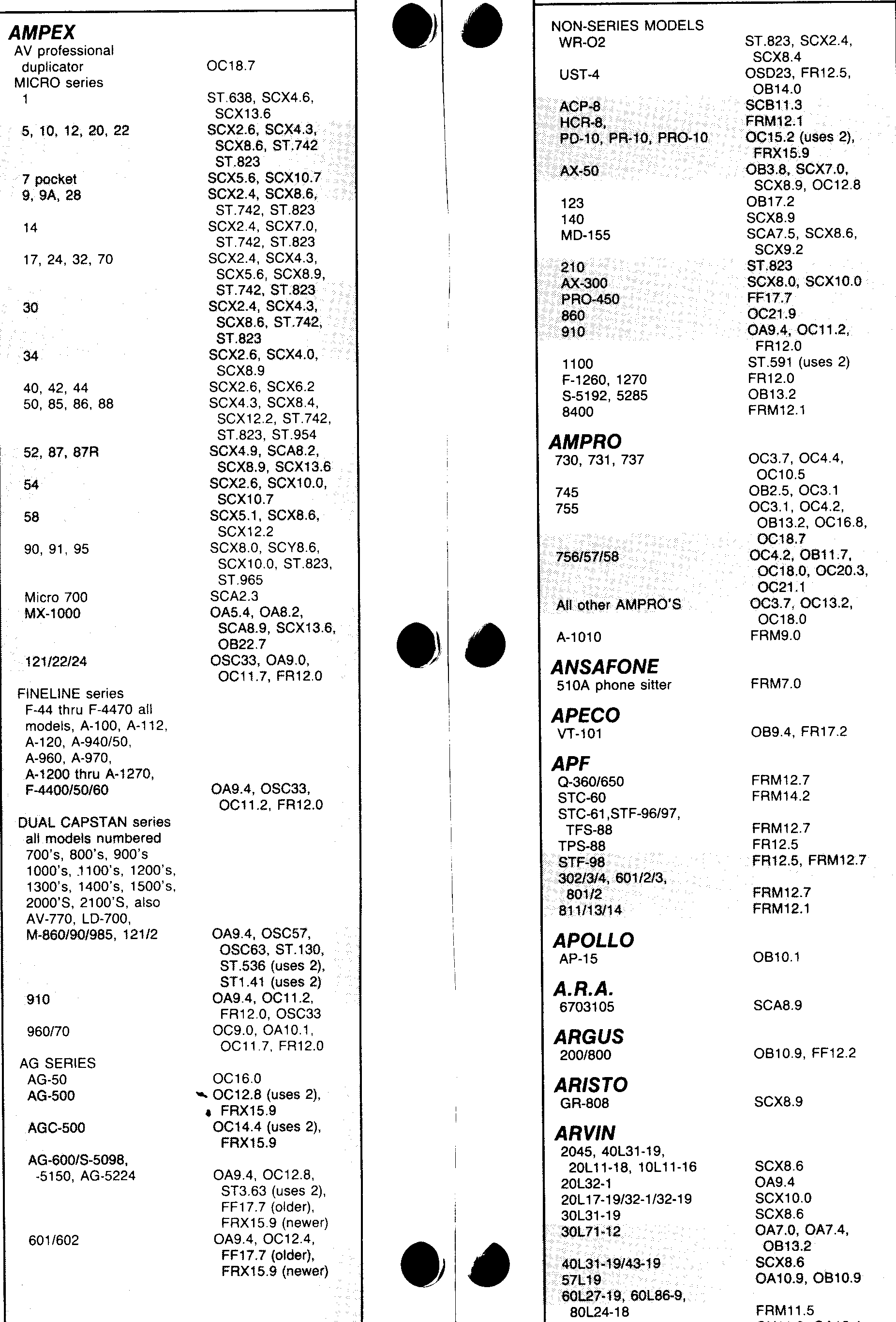 FEB with head number cross references. Ampex ABR10/15 brochure scan; sorry about the file size (approx. 1.5 Megs), but it was a booger to scan since the original used a rather billious 2-color print combination. Ampex