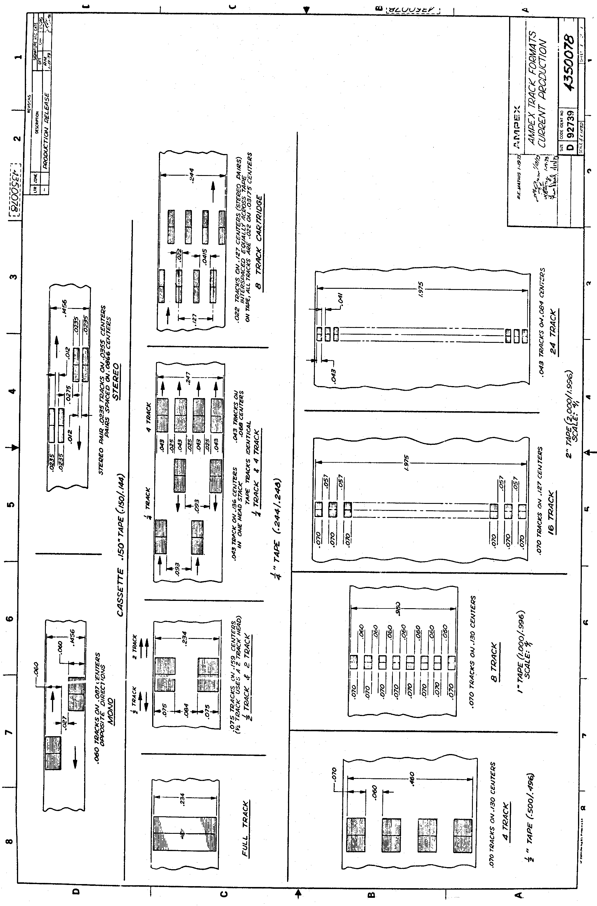 mechanical drawing from 1973 showing all tape head dimensions/layouts. Preliminary